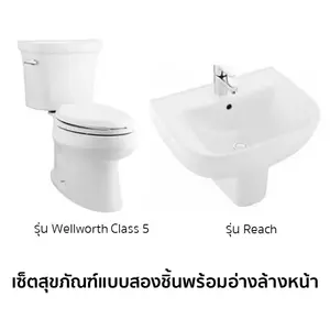 สุขภัณฑ์สองชิ้น KOHLER รุ่น Wellworth Class 5 4.8 ลิตร พร้อมฝารองนั่ง อ่างล้างหน้าและขารองอ่าง