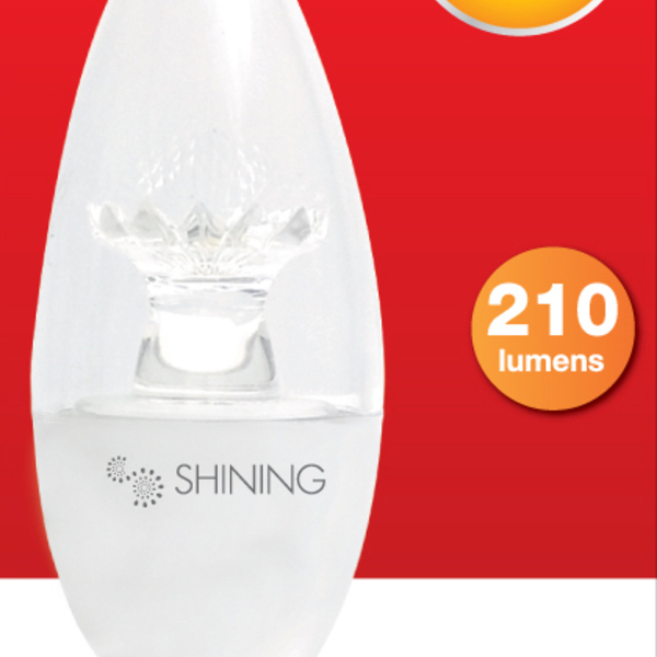 หลอดไฟ LED E14 3 วัตต์ วอร์มไวท์ หลอดจำปา SHINING