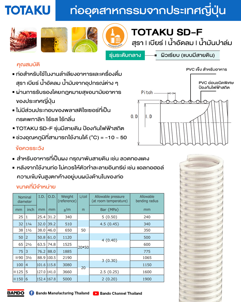 ✅ ท่อสำหรับใช้ในงานลำเลียงอาหารและเครื่องดื่ม สุรา เบียร์ น้ำอัดลม