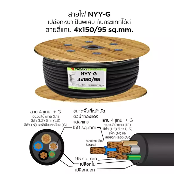 สายไฟ NYY-G 4x150/95 ตร.มม. YAZAKI