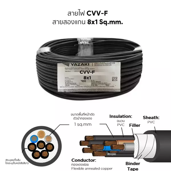 สายไฟ CVV-F 8x1 ตร.มม. YAZAKI