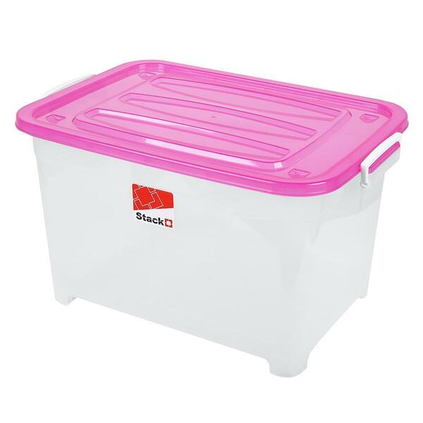 กล่องเก็บของ มีล้อ ฝาล็อค STACKO S105 A 100 ลิตร 50x70x42 ซม. สีชมพู