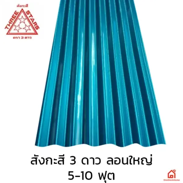 แผ่นสังกะสี ลอนใหญ่ ขนาด 5 ฟุต สีน้ำเงินชั้น 2 ตรา 3 ดาว