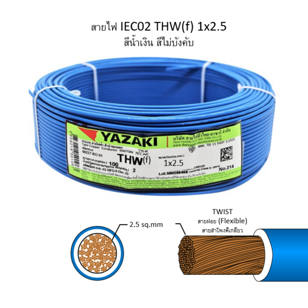 สายไฟ THW-F 1x2.5 ตร.มม. สีน้ำเงิน YAZAKI