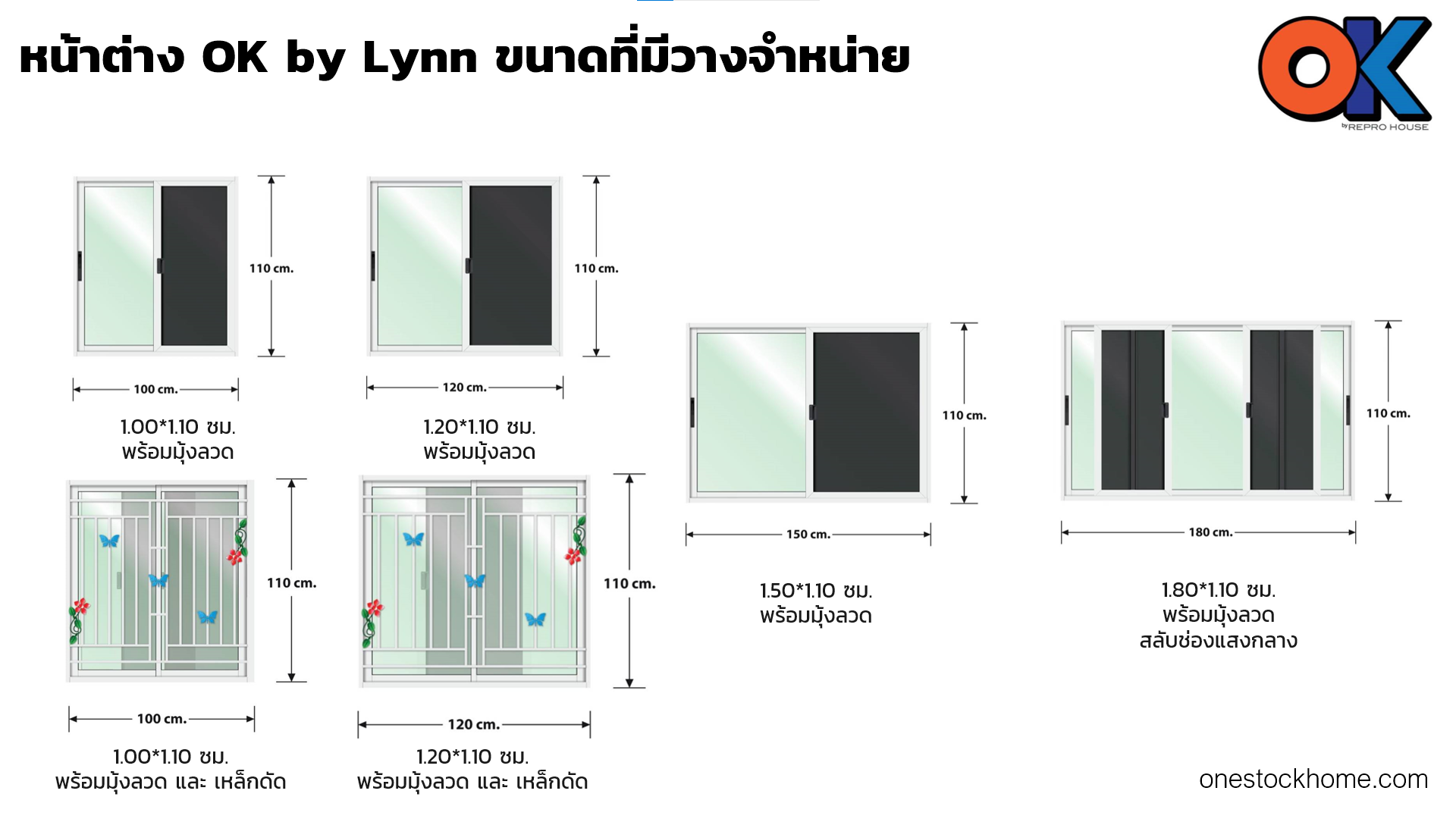 หน้าต่าง OK by Lynnขนาดที่มีวางจำหน่าย