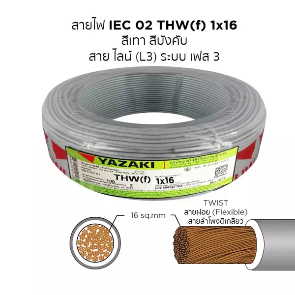 สายไฟ THW-F 1x16 ตร.มม. สีเทา YAZAKI