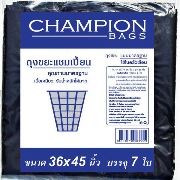 แชมเปี้ยนถุงขยะสีดำ 36x45"