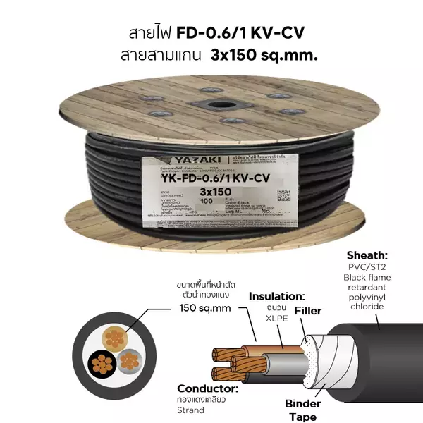 สายไฟ FD-CV 3x150 ตร.มม. YAZAKI 0.6/1 kV