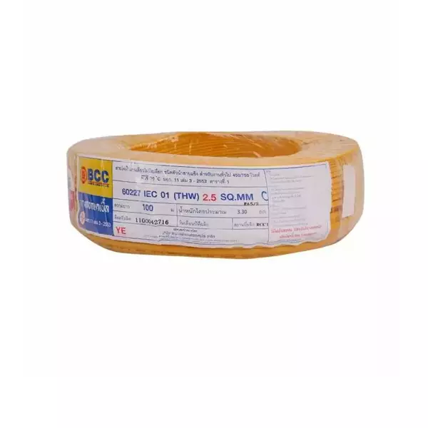 สายไฟ THW 2.5 ตร.มม. สีเหลือง BCC