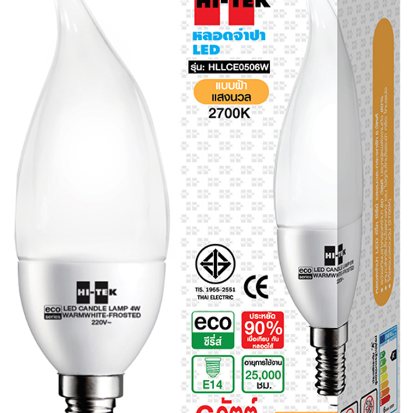 หลอดไฟ LED E14 6 วัตต์ วอร์มไวท์ HI-TEK OPERA