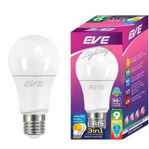 หลอดไฟ LED E27 9 วัตต์ คูลไวท์/วอร์มไวท์/เดย์ไลท์ ทรงลูกแพร์ EVE 3IN1