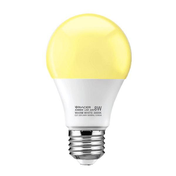 หลอดไฟ LED E27 8 วัตต์ วอร์มไวท์ ทรงลูกแพร์ RACER A60 KIMMIE