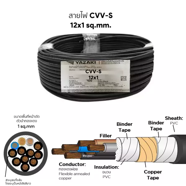 สายไฟ CVV-S 12x1 ตร.มม. YAZAKI