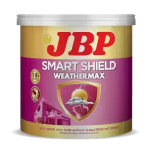 JBP สีน้ำอะครีลิคเจบีพีสมาร์ทชิลด์เวทเธอร์แม็กซ์ ชนิดกึ่งเงา ราคาถูก ผลิตจากอะครีลิคแท้ 100% เป็นสีทับหน้าที่ให้ความยึดเกาะและการปกป้องสูง ฟิลม์สีให้ความแข็งแรงด้วยนาโนซิลิโคนและเม็ดสีคุณภาพสูง มีฟูลออพอลิเมอร์ช่วยปกป้องพื้นผิวจากคราบสกปรก จึงช่วยให้สะอาด และสีติดทนนาน ด้วยเทคโนโลยีไมโครสเฟียร์ เซรามิคยังช่วยลดความร้อนจากภายนอก ล้างทำความสะอาดได้ง่ายและทนทานทุกสภาวะอากาศ