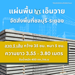 แผ่นพื้นคอนกรีตสำเร็จรูป ลวด 5 เส้น กว้าง 35 ซม. หนา 5 ซม. ยาว 3.55-3.80 ม.