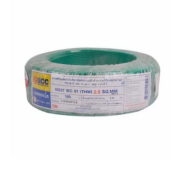 สายไฟ THW 2.5 ตร.มม. สีเขียว BCC