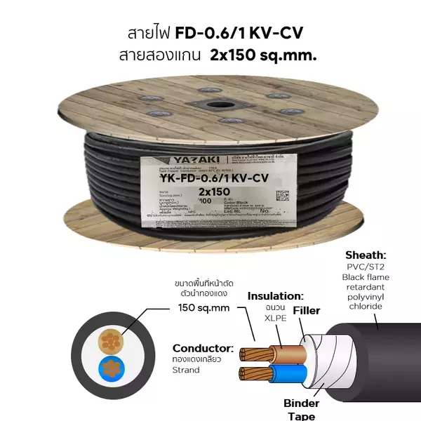 สายไฟ FD-CV 2x150 ตร.มม. YAZAKI 0.6/1 kV