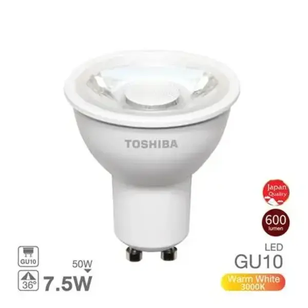 หลอดไฟ LED GU10 7.5 วัตต์ WARM WHITE TOSHIBA MR16/PAR