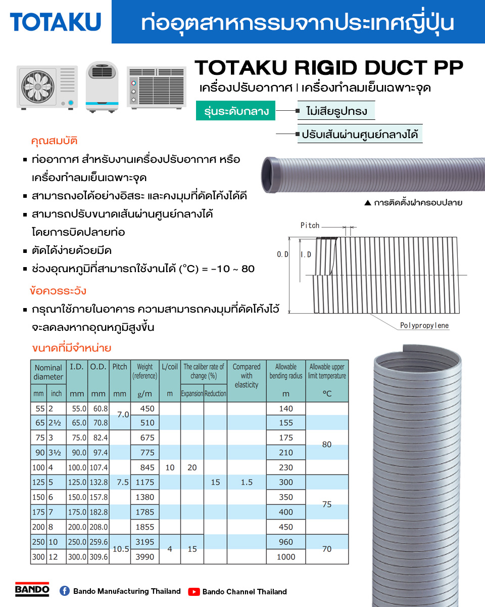 Totaku Rigid Duct-PP ท่อแอร์ ท่อลม ยืดหยุ่น 80°C