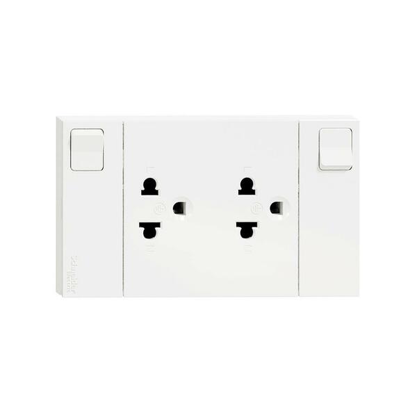 ชุดเต้ารับคู่ 3 ขา + สวิตช์ควบคุม SCHNEIDER M3T_SIS_WH สีขาว