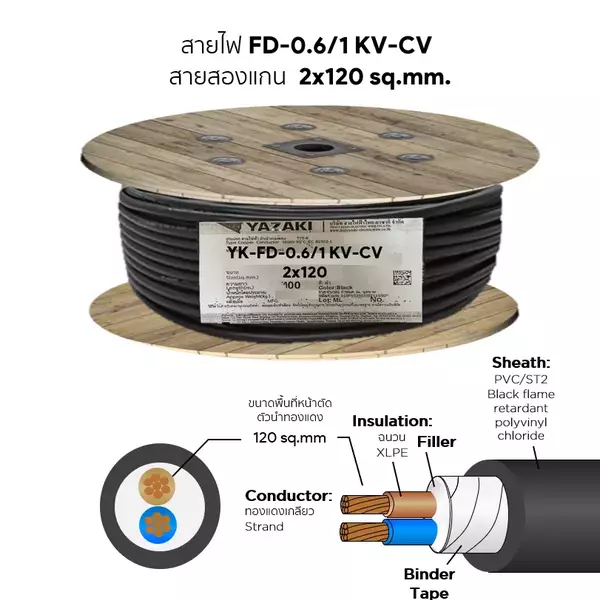 สายไฟ FD-CV 2x120 ตร.มม. YAZAKI 0.6/1 kV