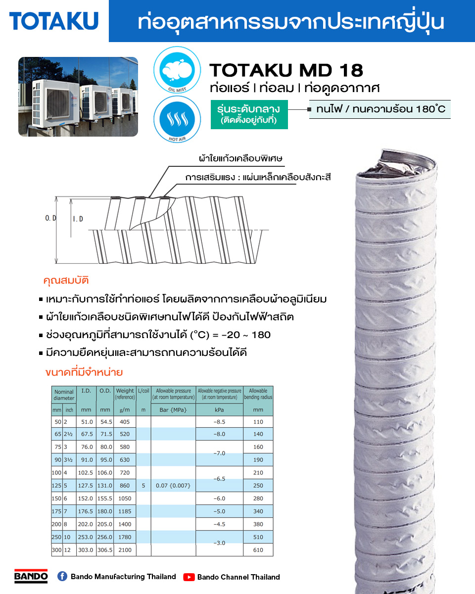 ยืดหดดีเยี่ยม ทนอุณหภูมิสูงได้ถึง 180 องศาเซลเซียส เหมาะกับการใช้ทำท่อแอร์ โดยผลิตจากการเคลือบผ้าอลูมิเนียม ทำให้ทนต่อความร้อนได้ดีเยี่ยม
