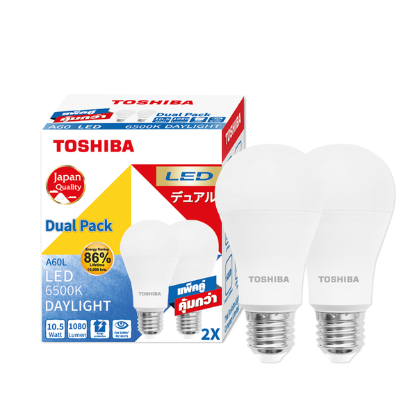 หลอดไฟ LED E27 10 วัตต์ เดย์ไลท์ ทรงลูกแพร์ TOSHIBA A60