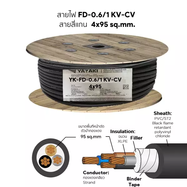 สายไฟ FD-CV 4x95 ตร.มม. YAZAKI 0.6/1 kV