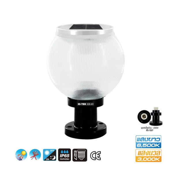 ไฟหัวเสาโซล่าเซลล์ HI-TEK HFSPR0200P 3 วัตต์ DAYLIGHT/WARM WHITE