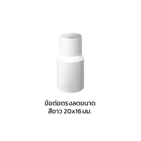 ข้อต่อตรงลดขนาด PVC ร้อยสายไฟ สีขาว 20x16 มม.