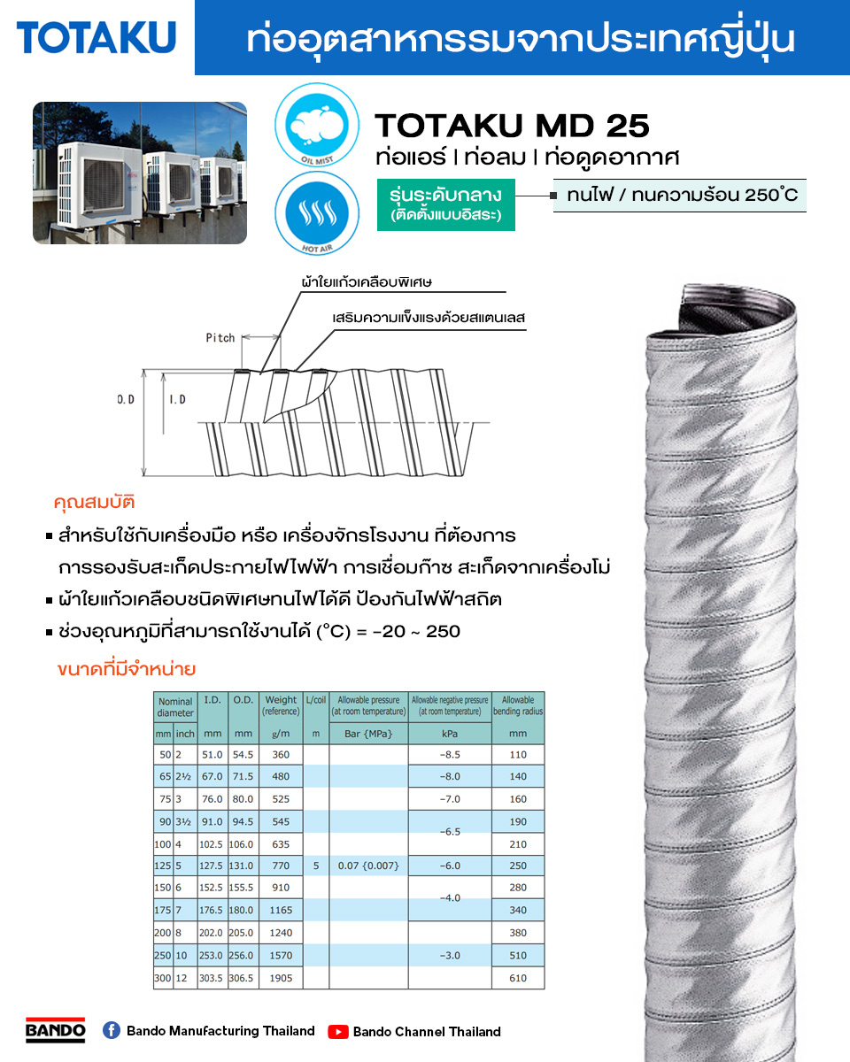 Totaku MD-25 ท่อแอร์ ท่อลม ยืดหยุ่น 250°C