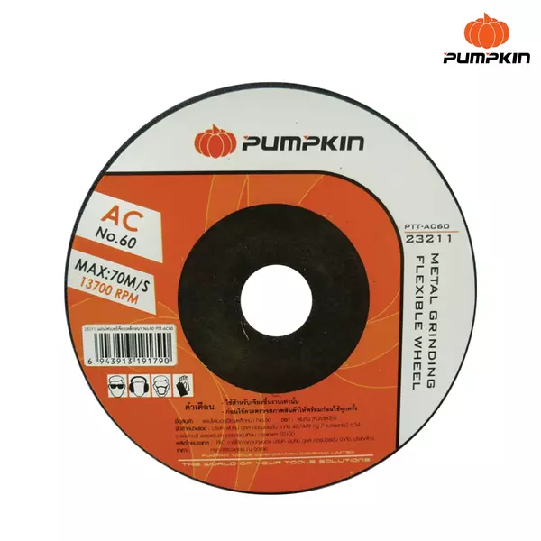 แผ่นไฟเบอร์เจียรเหล็ก บาง PUMPKIN AC NO.60 4 นิ้ว