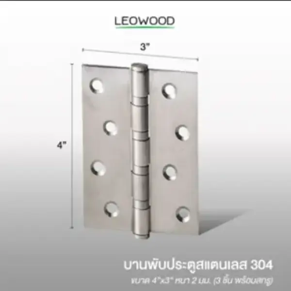 บานพับประตู สแตนเลส 1 ชุด บรรจุ 3 ชิ้น (พร้อมสกรู)