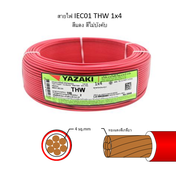 สายไฟ THW 4 ตร.มม. สีแดง YAZAKI