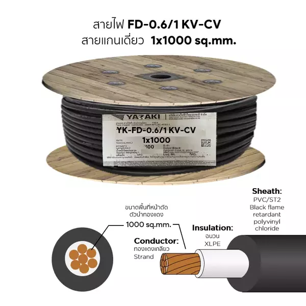 สายไฟ FD-CV 1x1000 ตร.มม. YAZAKI 0.6/1 kV