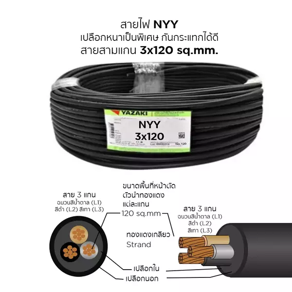 สายไฟ NYY 3x120 ตร.มม. YAZAKI