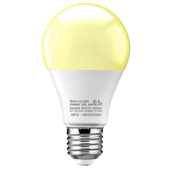หลอดไฟ LED E27 10 วัตต์ วอร์มไวท์ ทรงลูกแพร์ RACER A60 KIMMIE