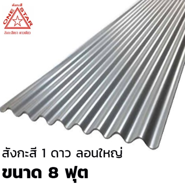 แผ่นสังกะสี ลอนใหญ่ ขนาด 8 ฟุต สีขาว ตรา 1ดาว