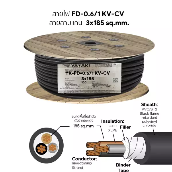 สายไฟ FD-CV 3x185 ตร.มม. YAZAKI 0.6/1 kV