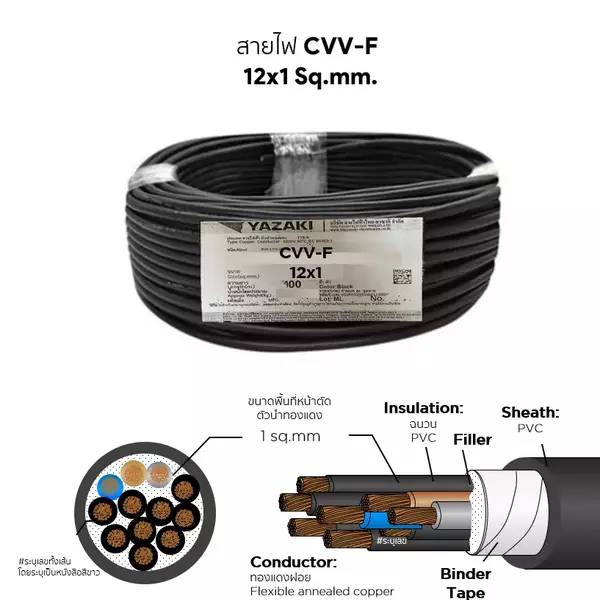 สายไฟ CVV-F 12x1 ตร.มม. YAZAKI