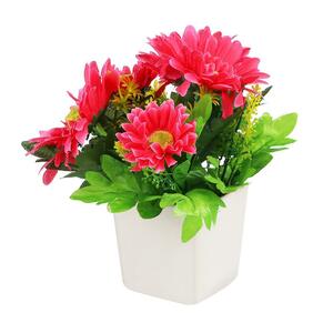 กระถางเยอบีร่า ฟ้าและดอกไม้ สีชมพู