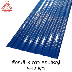 แผ่นสังกะสี ลอนใหญ่ สีน้ำเงิน ตรา 3ดาวขนาดต่างๆ