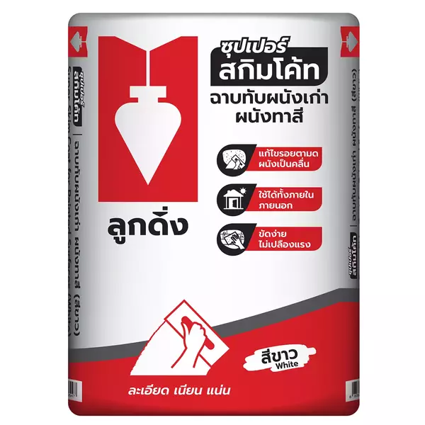 - ปูนฉาบผิวบาง ซุปเปอร์ สกิมโค้ท ตราลูกดิ่ง ช่วยแก้ปัญหาผิวหนังไม่เรียบเนียนได้เป็นอย่างดี