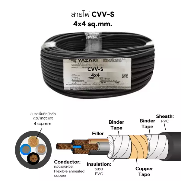 สายไฟ CVV-S 4x4 ตร.มม. YAZAKI