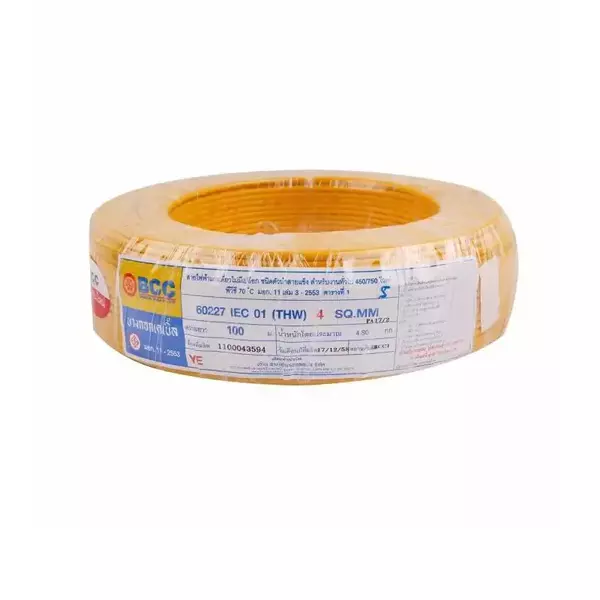 สายไฟ THW 4 ตร.มม. สีเหลือง BCC