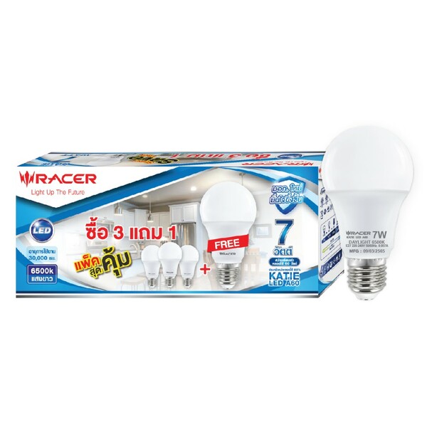 หลอดไฟ LED E27 7 วัตต์ เดย์ไลท์ ทรงลูกแพร์ RACER KATIE A60