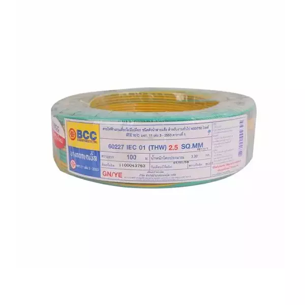 สายไฟ THW 2.5 ตร.มม. สีเขียวแถบเหลือง BCC